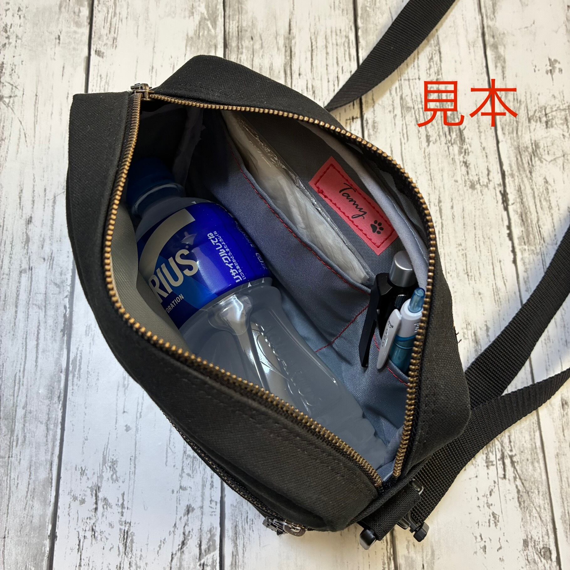 サイズ感等は画像をご確認ください。外布は11号帆布をベースに、内布は全体に弱撥水ナイロンを使用し、ファスナー部分と側面から底にかけての外布と内布の間に硬めのバッグ用接着芯を重ねた軽く形崩れのしづらい丈夫な仕上がりのミニショルダーバッグです。 遠出からちょっとしたお出かけ等、様々なシチュエーションでご使用いただけます。