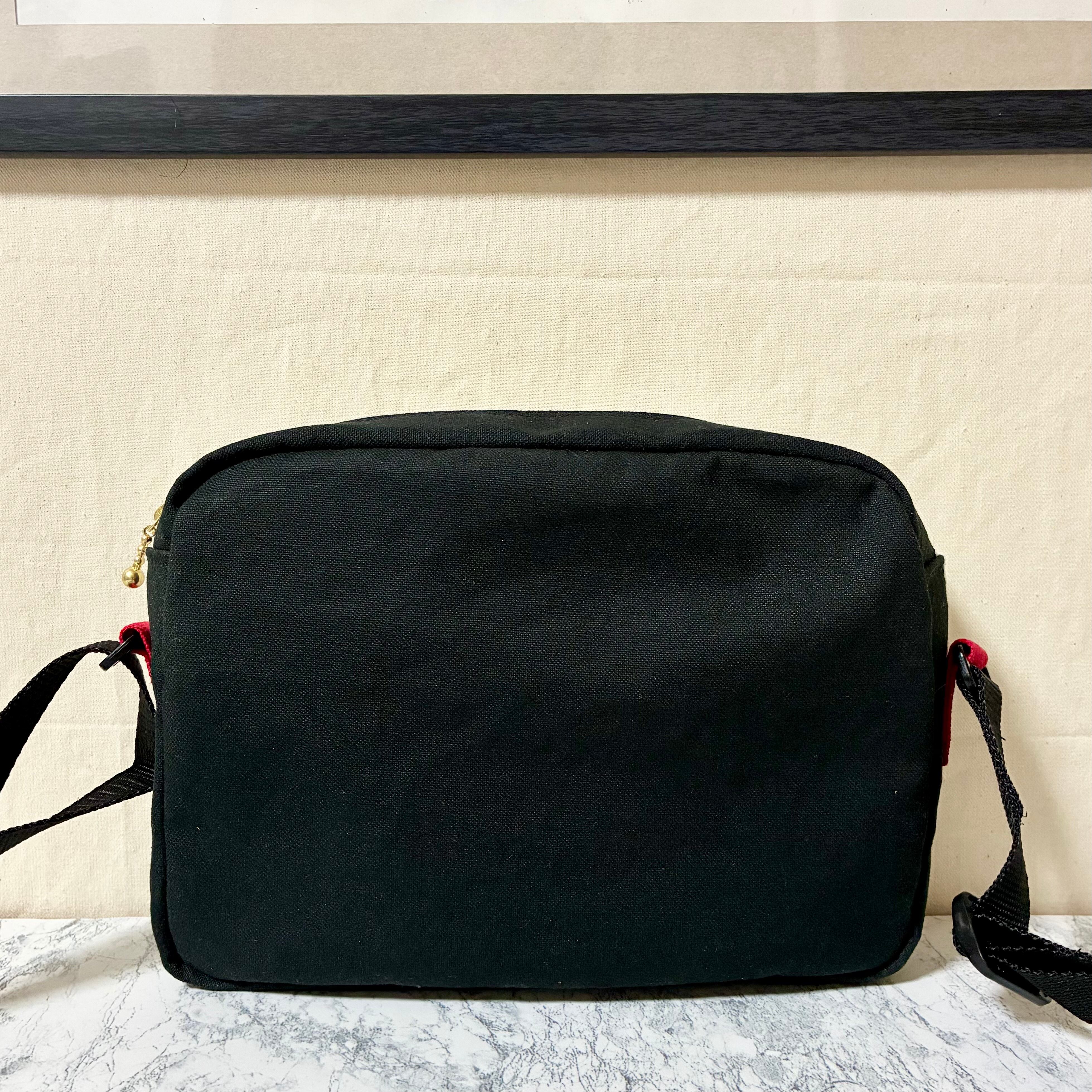 猫柄ミニショルダーバッグ ブラック&ホワイト ハンドメイド ストリート 帆布バッグ