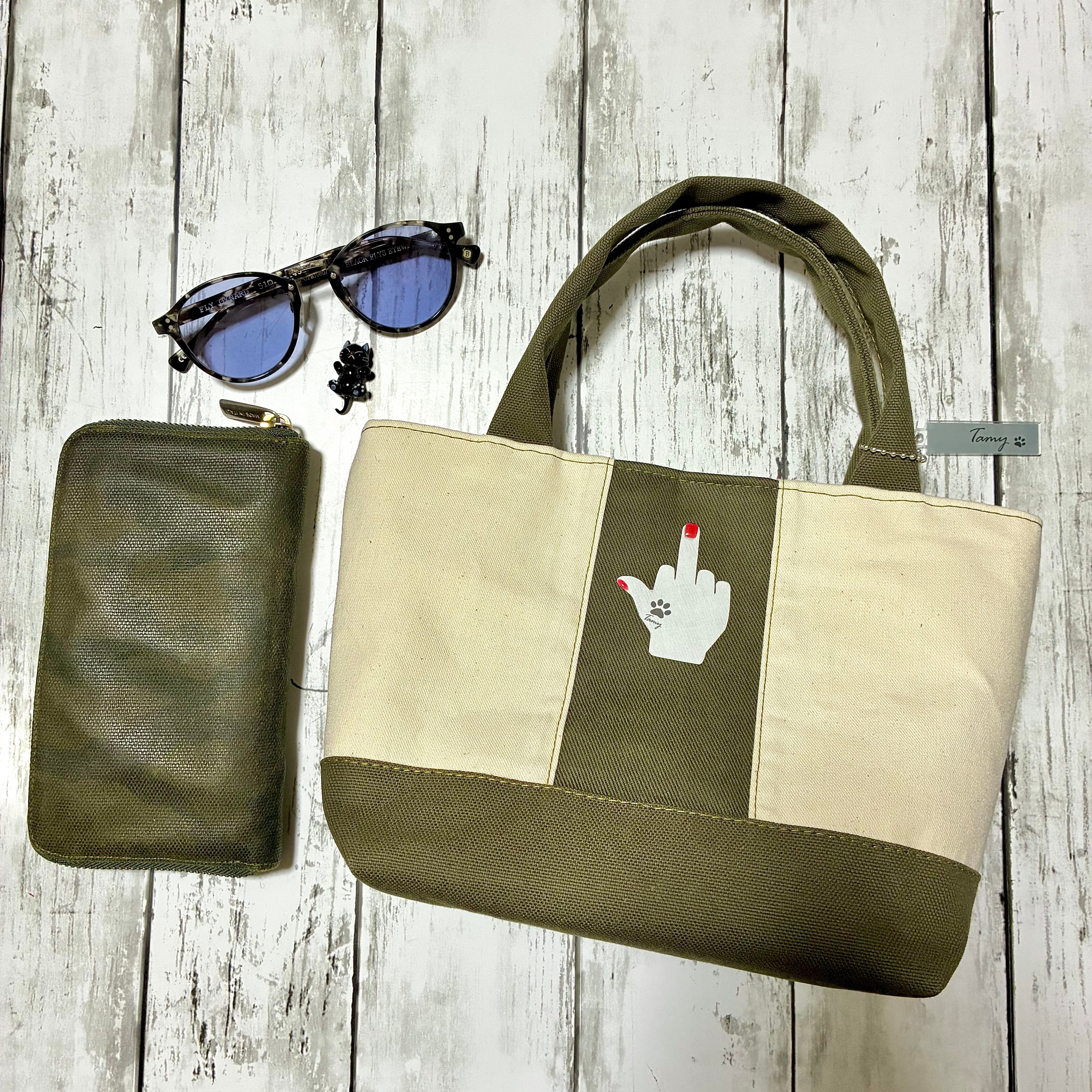 中指ミニトートバッグ~Tamyオリジナル~ 生成&カーキ Dカン付き ハンドメイド ストリート 帆布バッグ