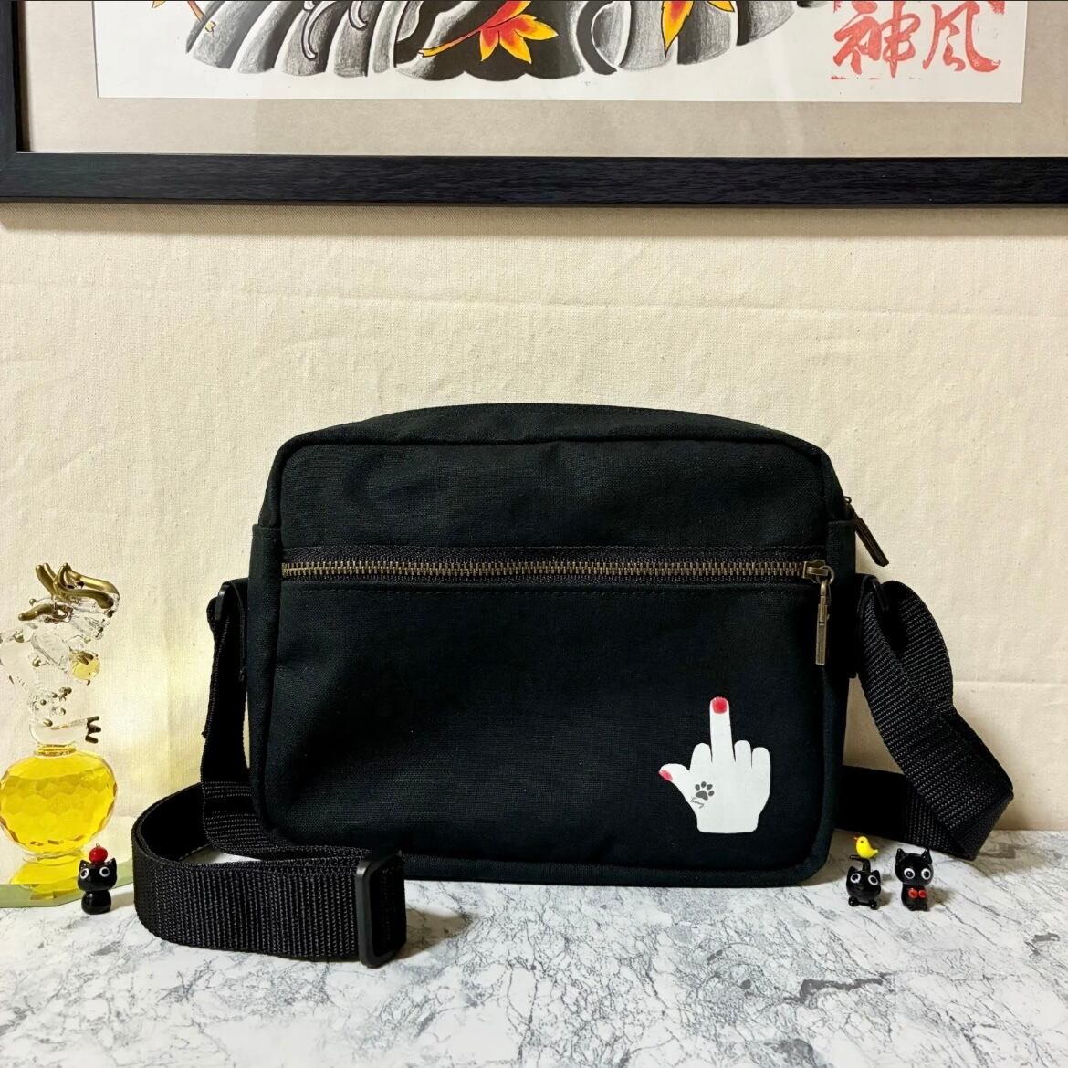 中指ミニショルダーバッグ~Tamyオリジナル~ ブラック ハンドメイド ストリート 帆布バッグ