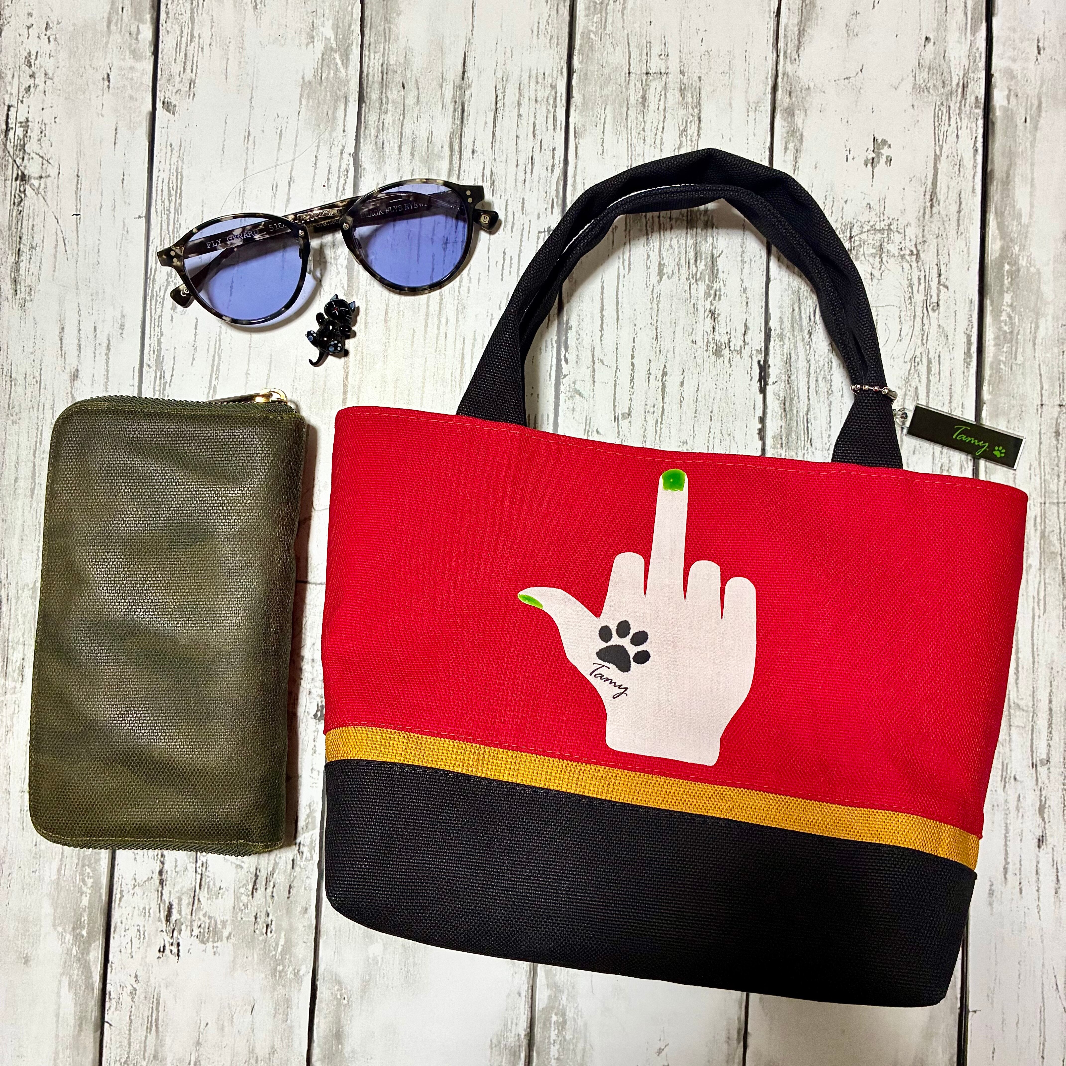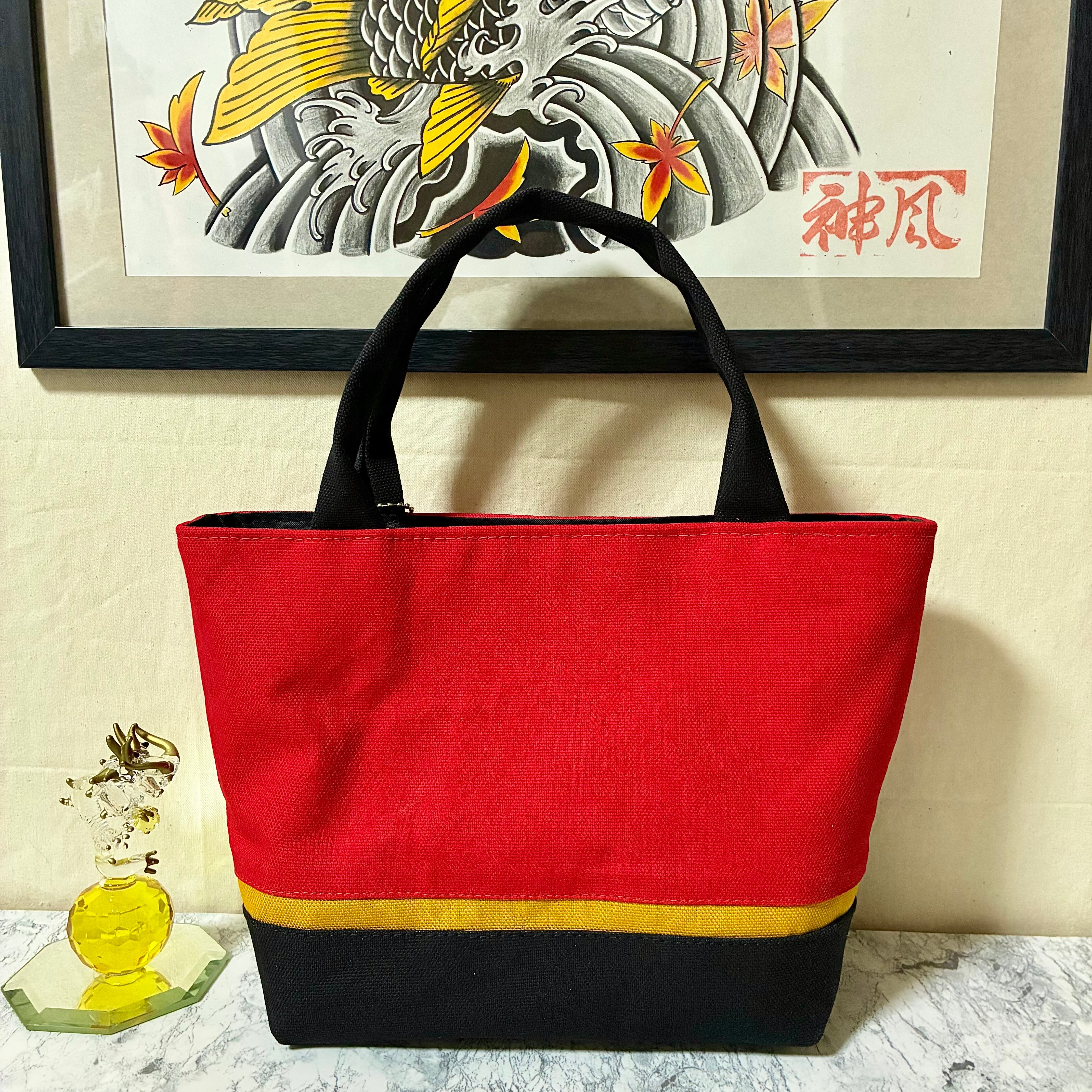 中指ミニトートバッグ~Tamyオリジナル~ レッド&ブラック Dカン付き ハンドメイド ストリート 帆布バッグ