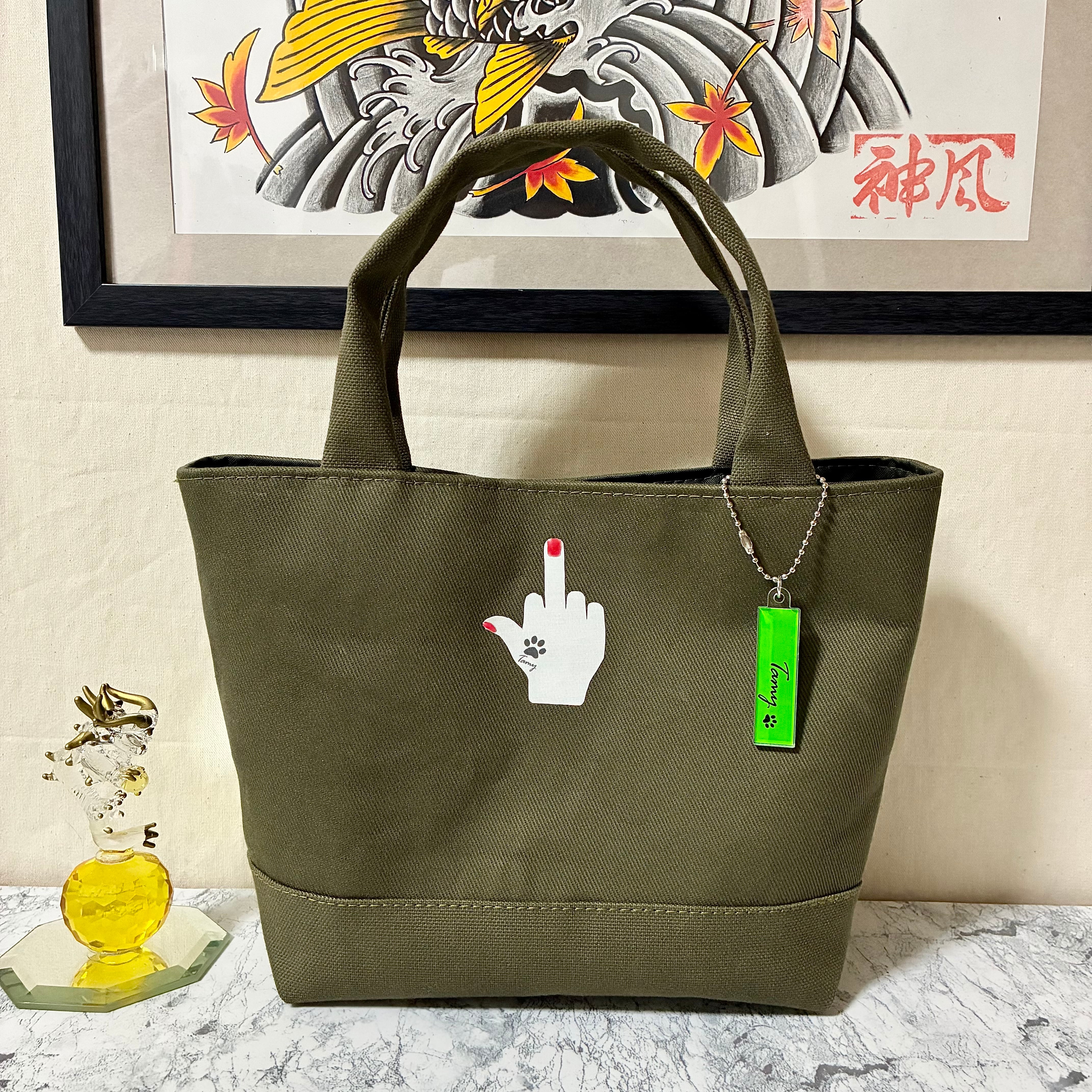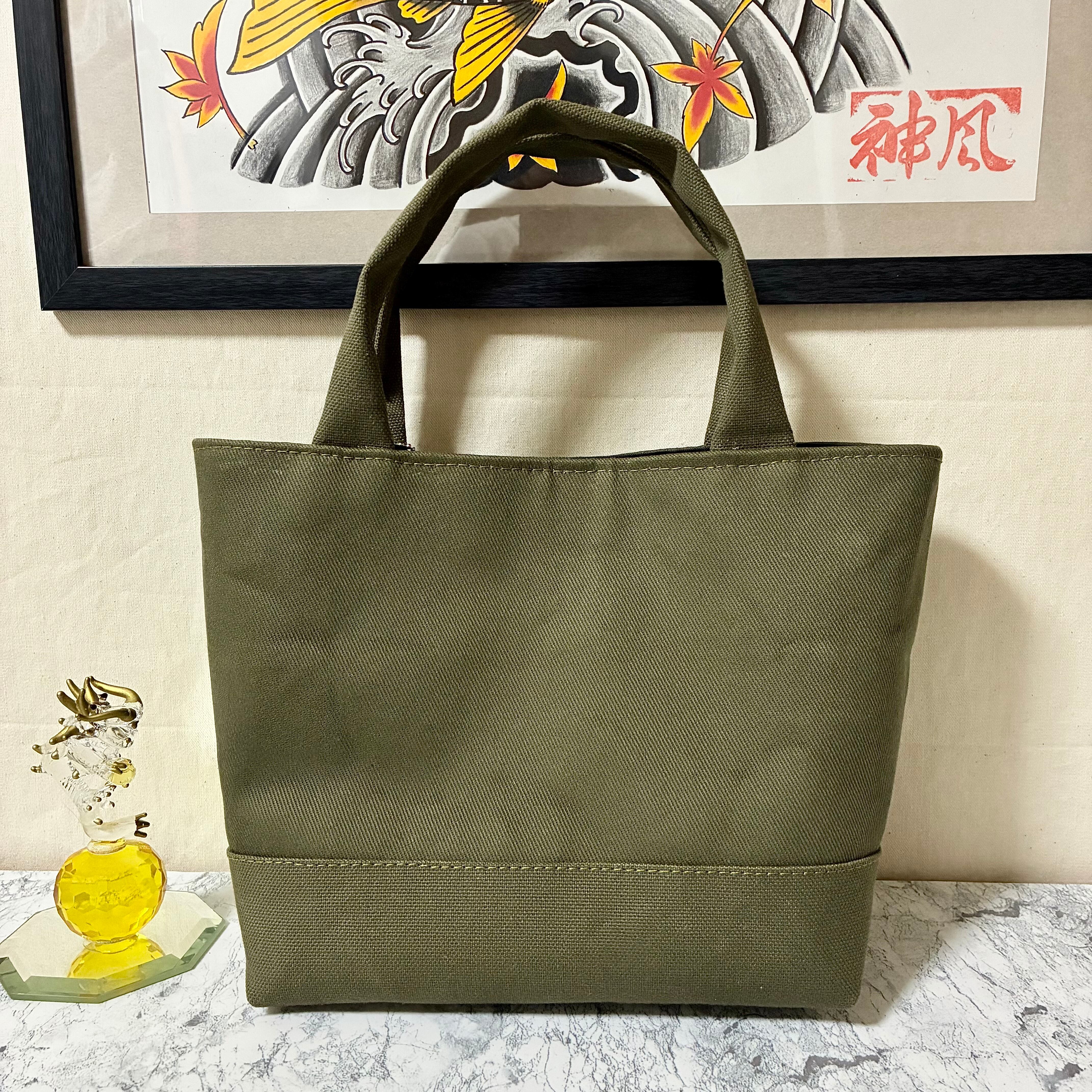 中指ミニトートバッグ~Tamyオリジナル~ オールカーキ Dカン付き ハンドメイド ストリート 帆布バッグ