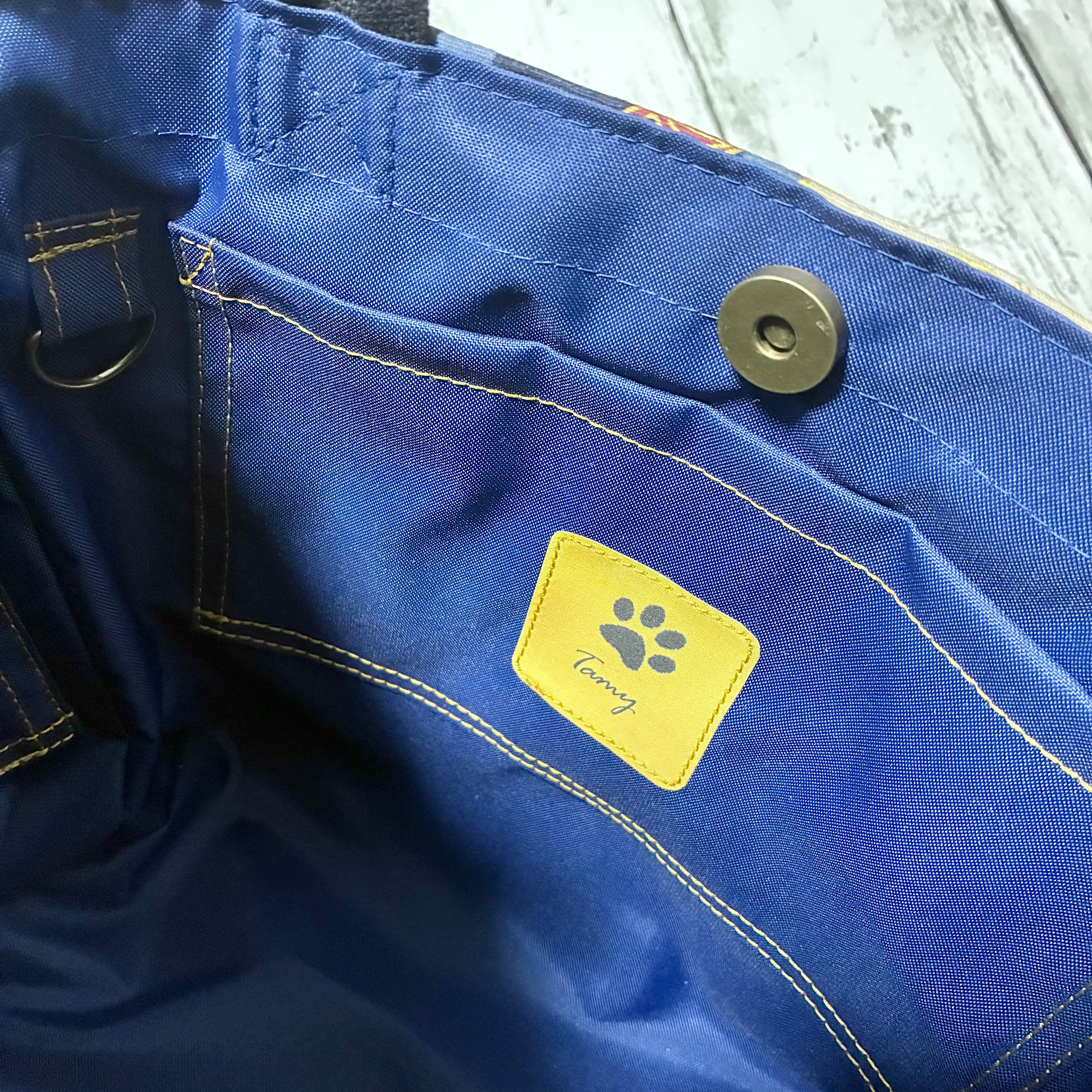 和柄ミニトートバッグ 風神雷神 ブラック&ネイビー Dカン付き ハンドメイド ストリート 帆布バッグ