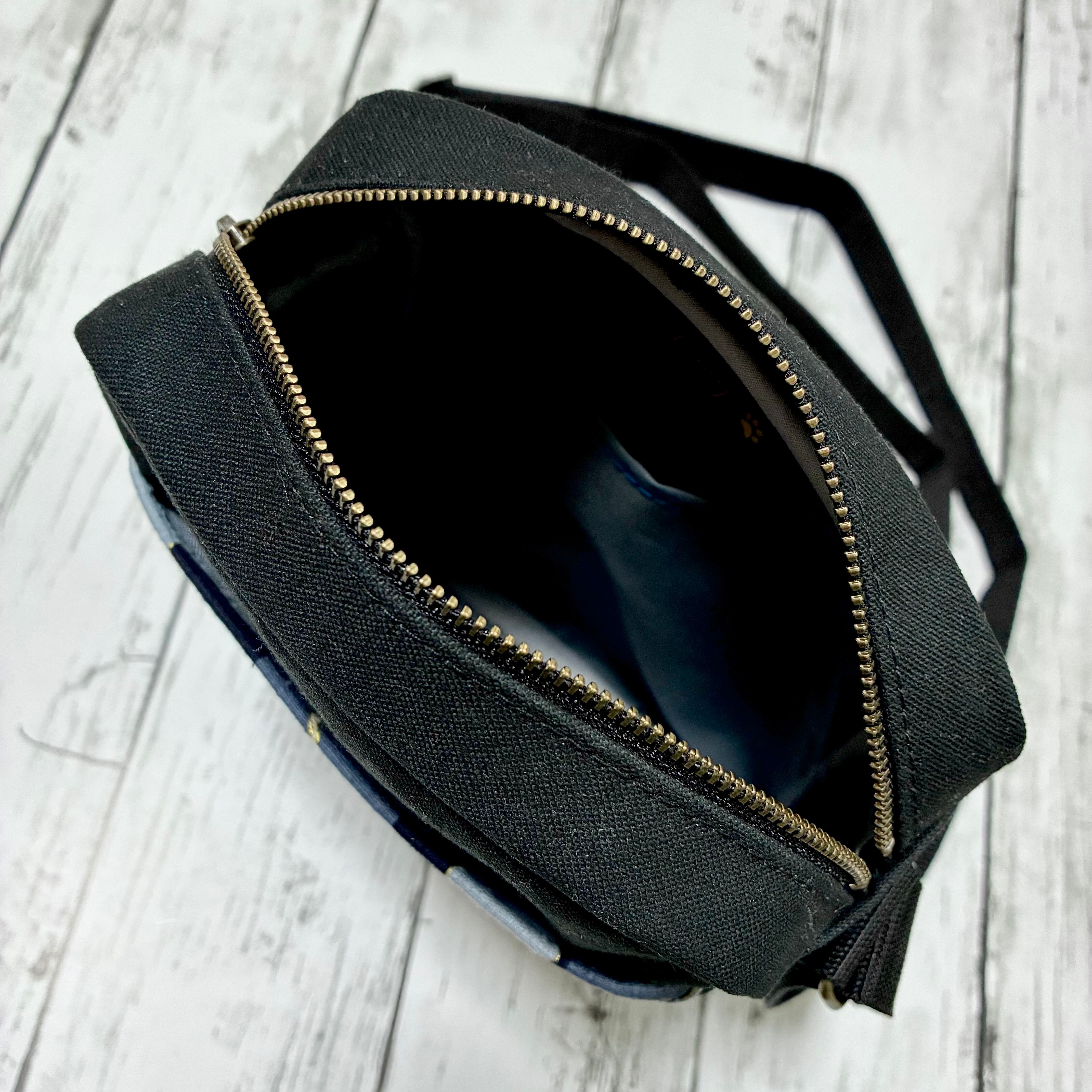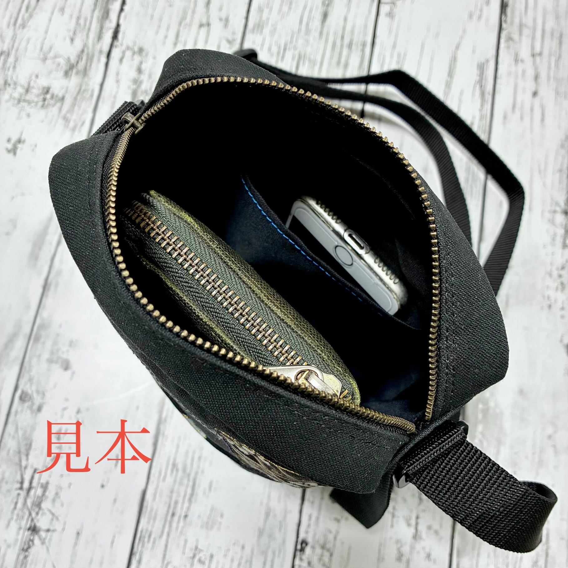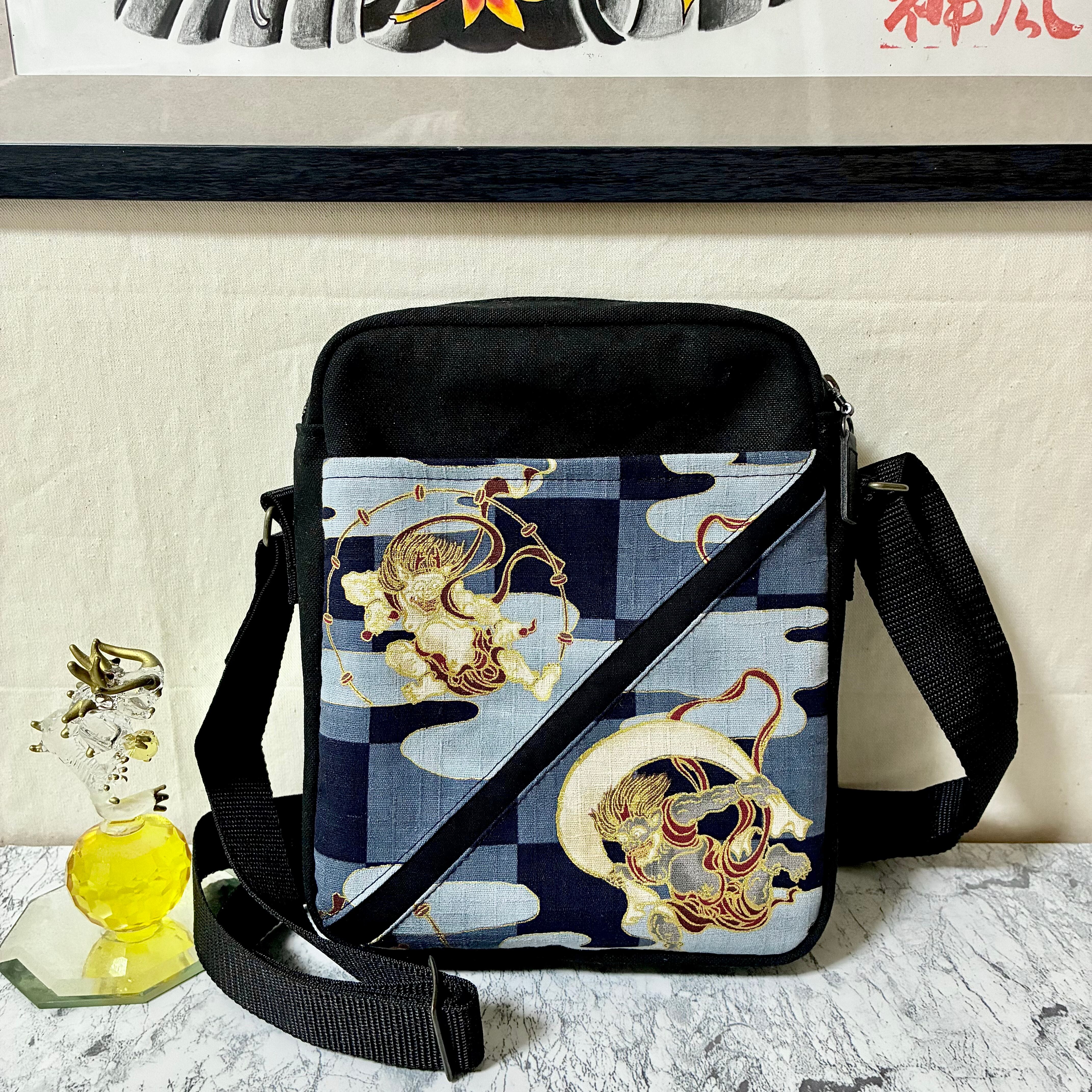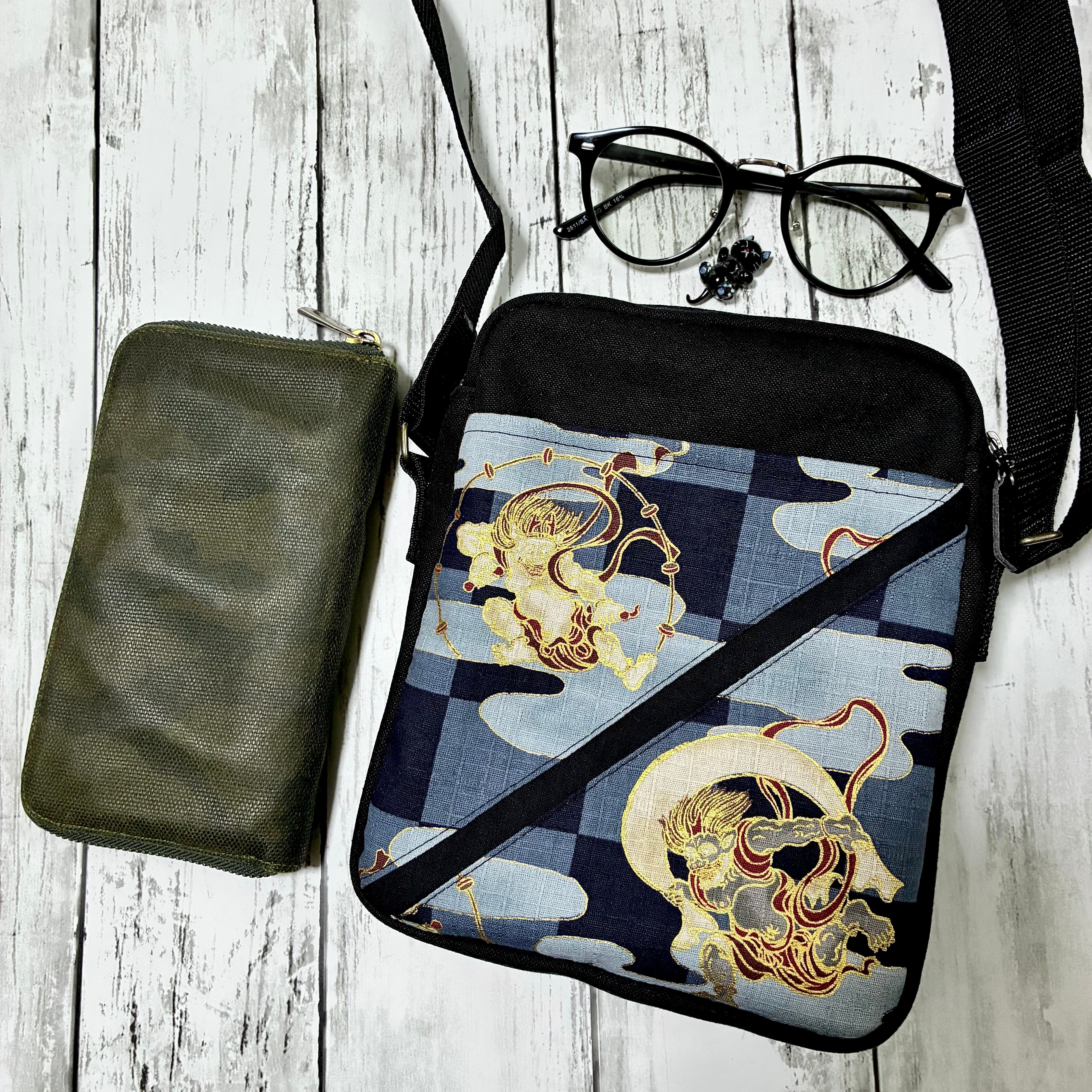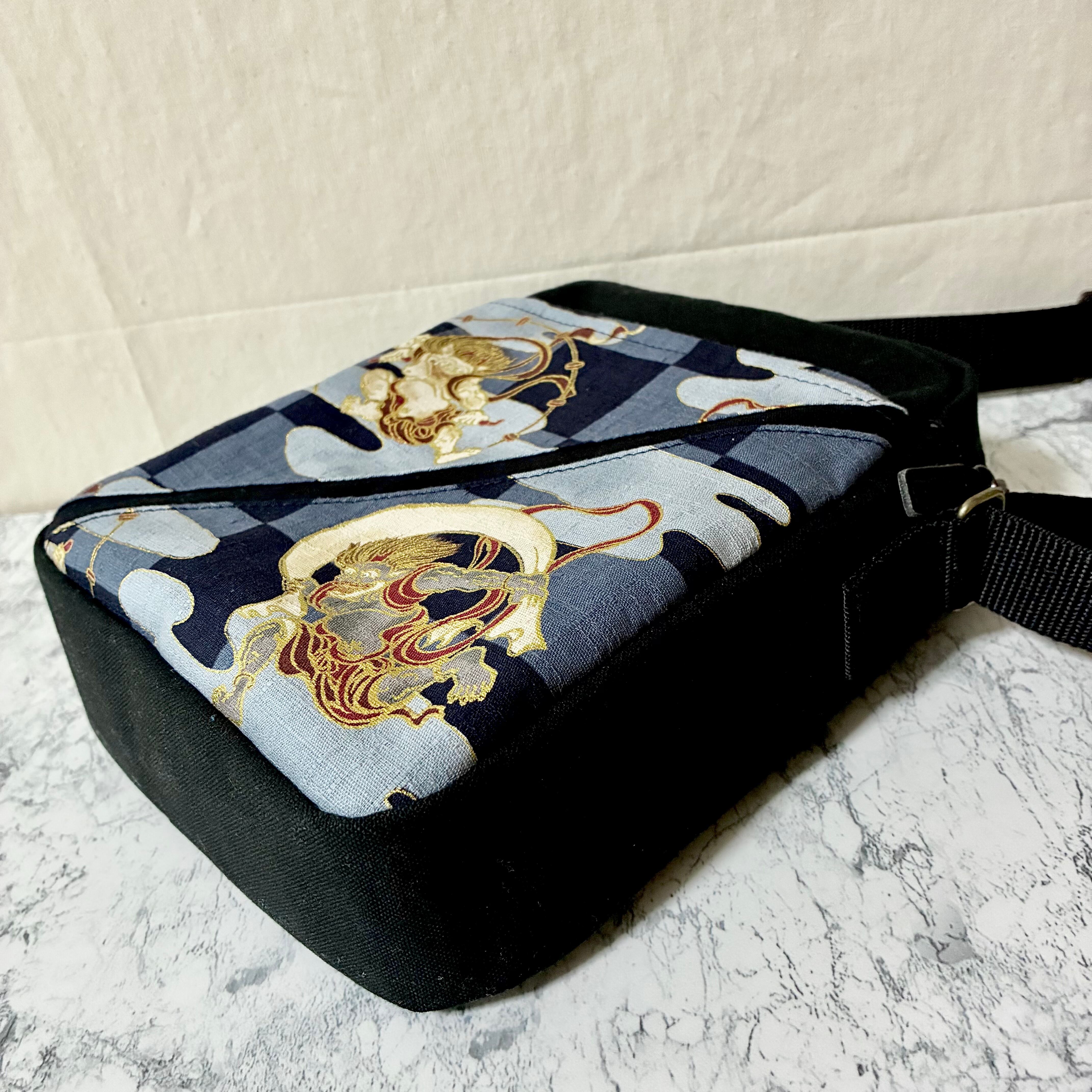 和柄ミニショルダーバッグ 風神雷神 ブラック ハンドメイド ストリート 帆布